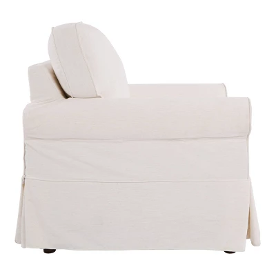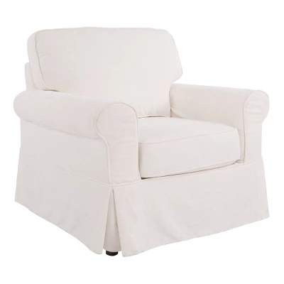 The Ashton Slip Cover Chair is a soothing armchair that complements the cozy sensibilities of the living room. For a peaceful retreat after working all day, this chair easily accommodates your needs. The slipcover cloth is removable and washable with simplicity. Smooth fabric and divine amenities gives your living room a decorative facelift.