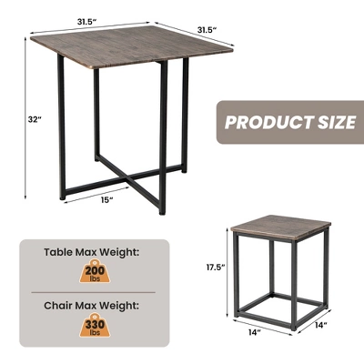- Easy to Assemble & Care: Equipped with complete accessories, our bistro table set can be easily put together with detailed instruction and assembly video. Moreover, the kitchen table and stools are easy to clean with a wet cloth to maintain. Table dimension: 31.5” x 31.5” x 31” . Stool dimension 14” x 14” x 17.5”(L x W x H).
