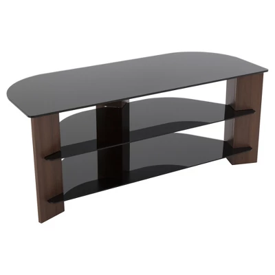 The FS1100VARWB-A (Varano) is a stylish, understated, ready to assemble TV Stand in Walnut wood-effect. The black tempered glass shelves support a TV up to 88lbs (up to 55″), as well as AV components up to 22lbs per shelf. The angled back corners allows for multiple positioning options, as it can be placed flat against a wall or into a corner of a room, providing ideal viewing angles for a larger area. The two lower shelves are perfect for AV components such as Digital Receivers, DVRs, Blu-ray, or Gaming Consoles. Installation is kept neat via the built-in cable management with entry and exit points along the length of the column so all power and connectivity wires can easily reach the equipment in an organized, tidy fashion. For TV Sizes: 32, 37, 39, 40, 42, 43, 46, 47, 50, 55. For TVs with wide feet, please measure the width of the feet to ensure it will fit on the stand.