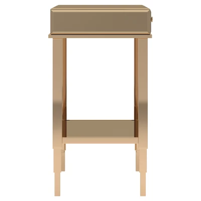 This mirrored TV stand from Inspire Q will bring an elegant, glam style into your living or family room that’s sure to impress your guests. This striking piece is inspired by Old Hollywood glam with Art Deco touches that will complement any modern design. Featuring a spacious drawer and a large open shelf, you’ll have ample storage and display space for decorative items.