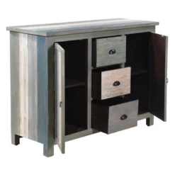 36″ Distressed 3 Drawer 2 Door Cabinet Blue/Gray – StyleCraft