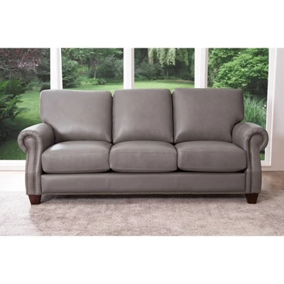 Fulfill the look of any room in your home with this extravagant Logan Leather Sofa. The high density foam cushioning enveloped in dacron give you top of the line comfort. The hardwood frame is kiln-dried to give this armchair added stability. A top-grain leather upholstery, complete with curved arms and nail-head trim, rounds out the look for this irresistible sofa.