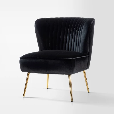 Classic and traditional style accent chair with pleated details.Made with premium velvet fabric,comfortable for skin touch. High-density foam filling with a solid and manufactured wood frame provide comfort and support.The slender polished gold metal legs bring the modern design,and add to the timeless fashion of this piece. It’s the perfect pick for living room and bedroom.Item size:26″Wx29.5″Dx31″H,Seat size:22″Wx20.5″Dx18″H
