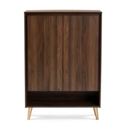 Landen Mid – Century Modern 2 Doors Shoe Storage Cabinet Walnut/Brown/Gold – Baxton Studio